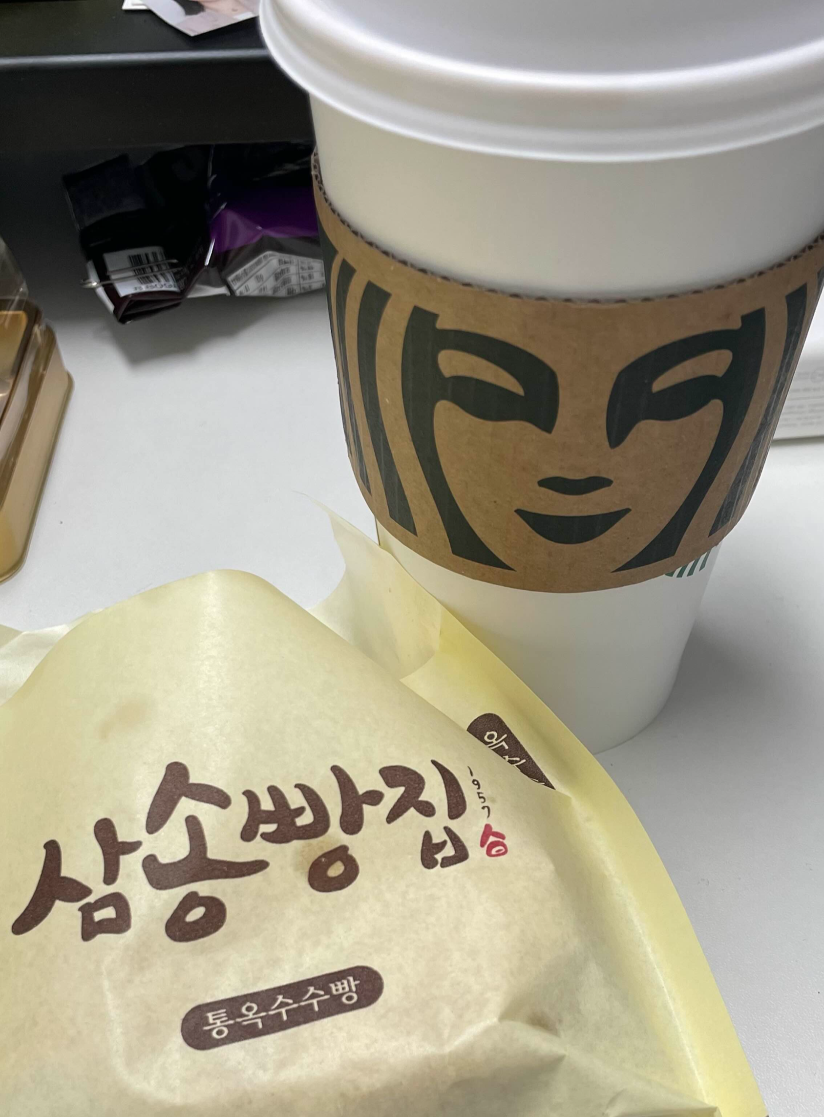 저는 용산역 삼송빵집에서 옥수수빵을 샀고,