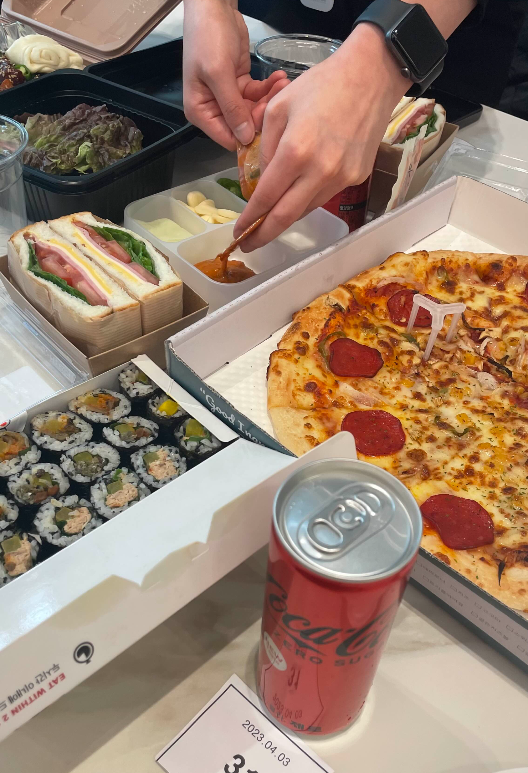 다른 팀원들도 커피랑 디저트랑 한손 가득가득